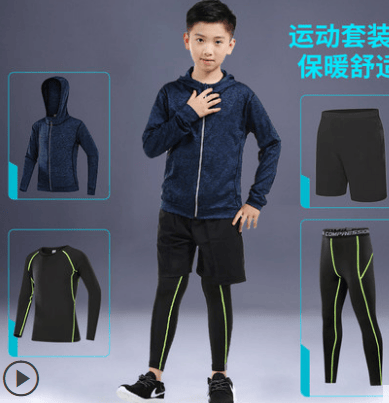 儿童紧身长裤男童打底裤跑步训练服篮球足球运动套装速干衣健身服